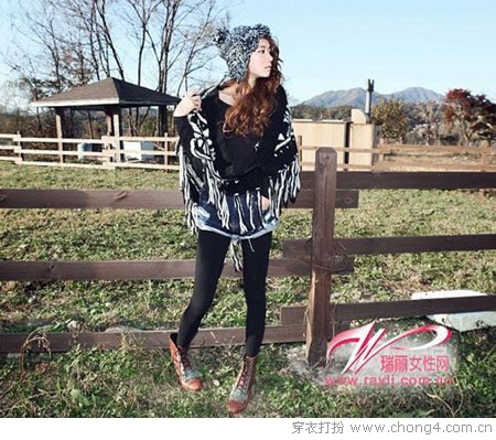04 boreal Europe amorous feelings with tassel shawl make you look like they're nature like relaxed nature, black and white and two color paint and lively on temperament.